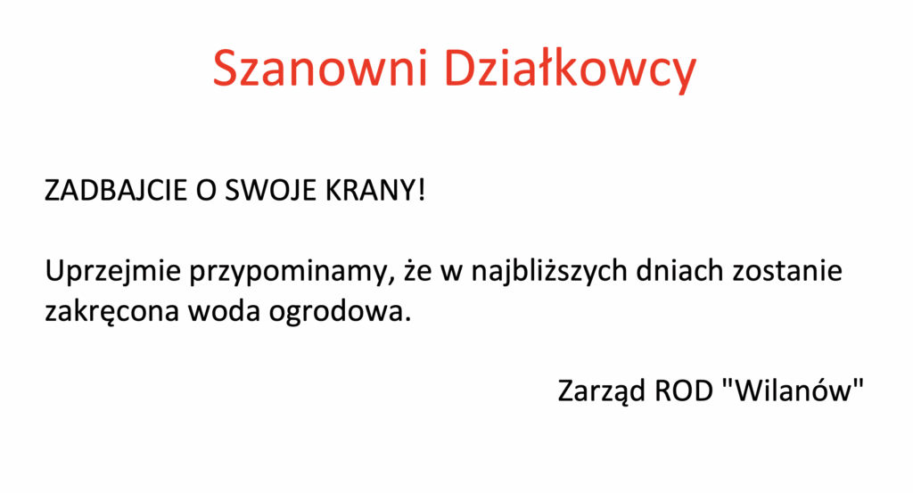 Szanowni Działkowcy