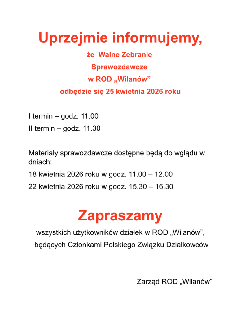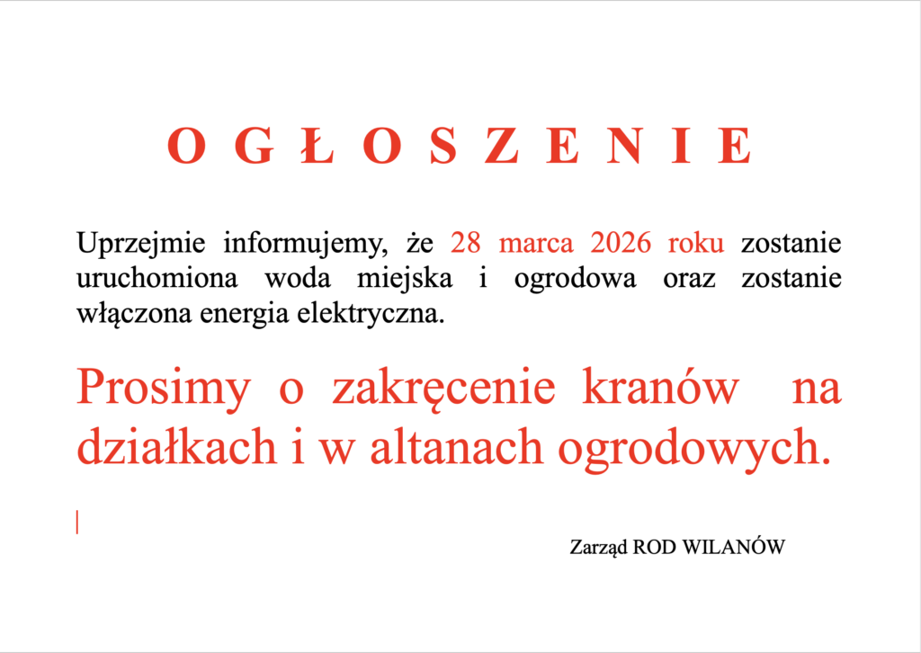 Z uwagi na nie przestrzeganie Regulaminu Ogrodu przez Działkowców uprzejmie informujemy, że od jutra, tj. od 24 stycznia 2026 roku alejki będą zamknięte.